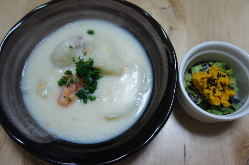 写真はレタスと、かぼちゃをゆででつぶしたものも入っています